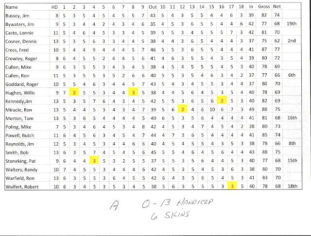 I want to mention again, If you have signed up and barring an emergency please don't leave us hanging by being a no show. This creates havoc among the pairings. This caused a log jam after a few holes with threesomes trailing foursomes that they thought were slow. That and the heat caused some tempers to flare. All of it could have been avoided if the players had been present or at least called early enough for us to have made better placement of players.